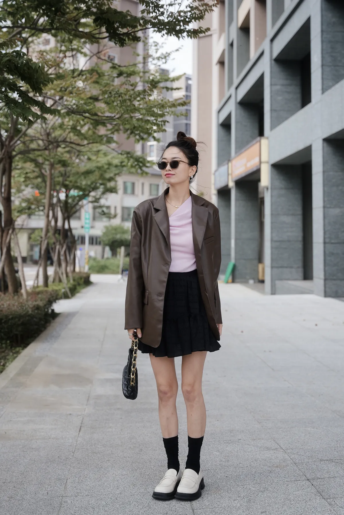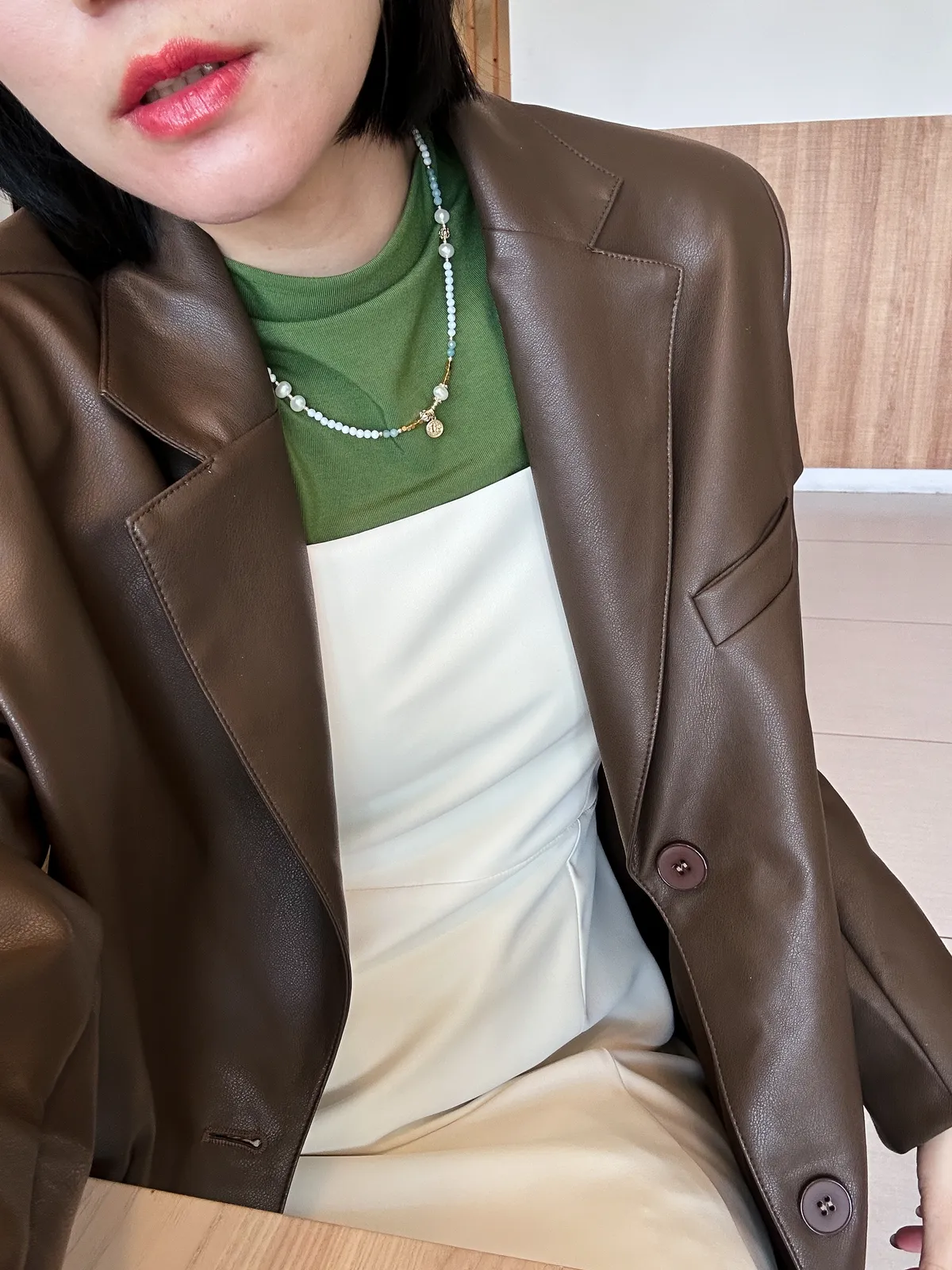 雖然不是真皮但皮革的柔軟上身馬上可以感覺出來第一次嘗試西裝款的皮外出乎意料的很好搭多了一點個性很時髦 📌 穿搭介紹請直接點選連結看直播唷 ▾ (連結約一個月後會自動刪除)🔗Facebook .⚠️ 注意事項請確認好尺寸、款式、顏色再下單若有疑慮都歡迎到粉絲專頁私訊我們我們會幫您建議適合的商品尺寸