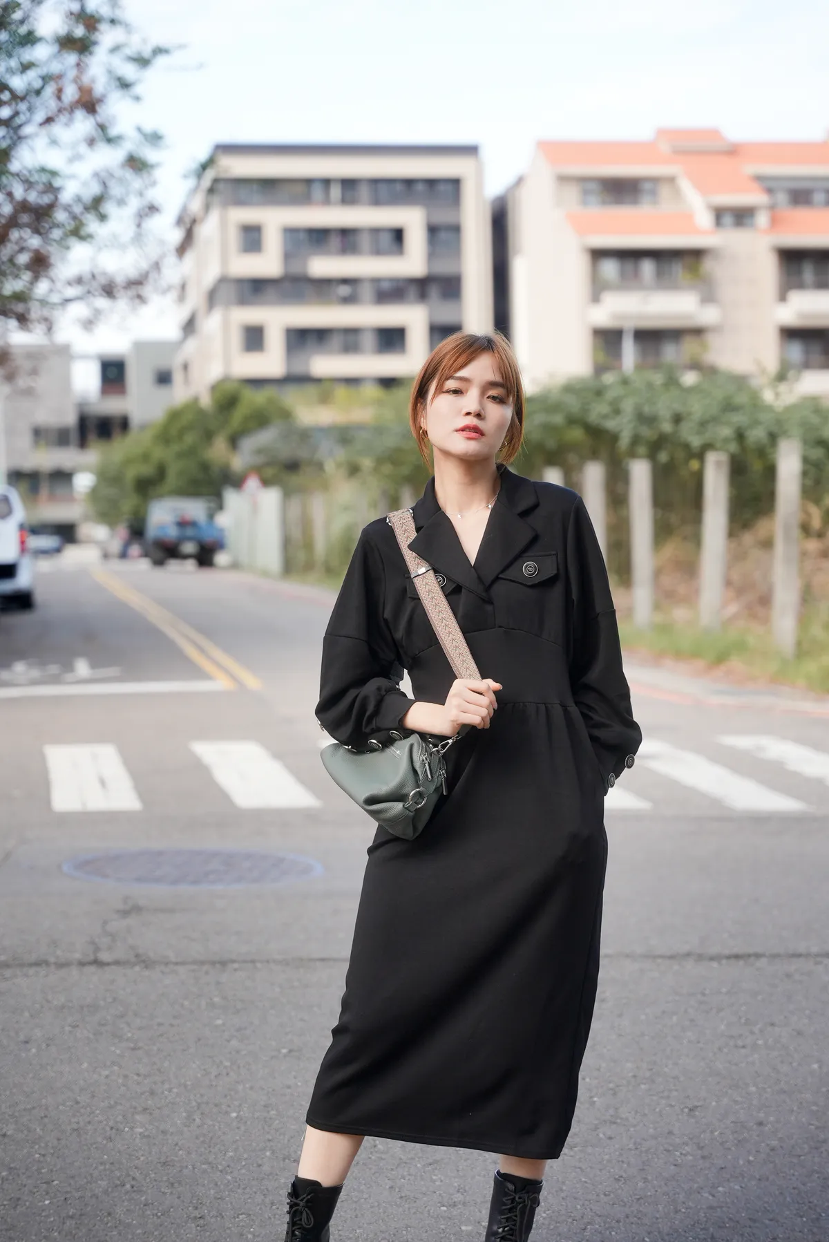 太空棉大鈕釦連身裙