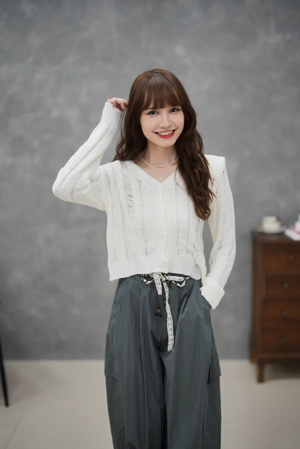 v領的位置抓得很剛好搭配破損感有種說不出的時髦隨性搭一件直筒褲就好看的不要不要 📌 穿搭介紹請直接點選連結看直播唷 ▾ (連結約一個月後會自動刪除)🔗Facebook .⚠️ 注意事項請確認好尺寸、款式、顏色再下單若有疑慮都歡迎到粉絲專頁私訊我們我們會幫您建議適合的商品尺寸
