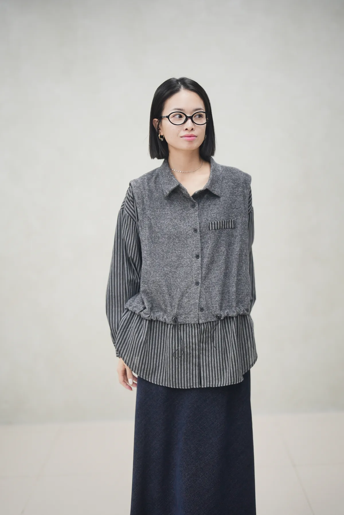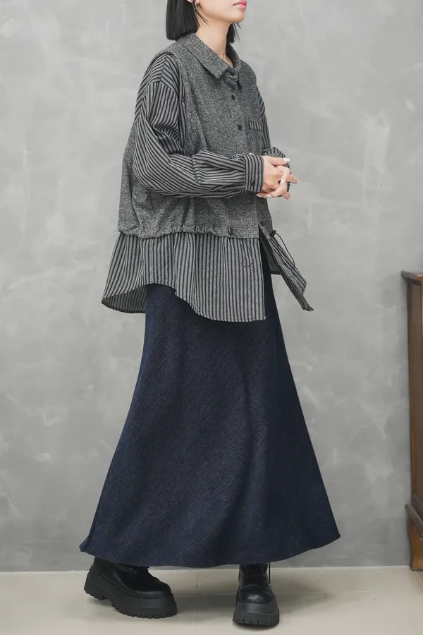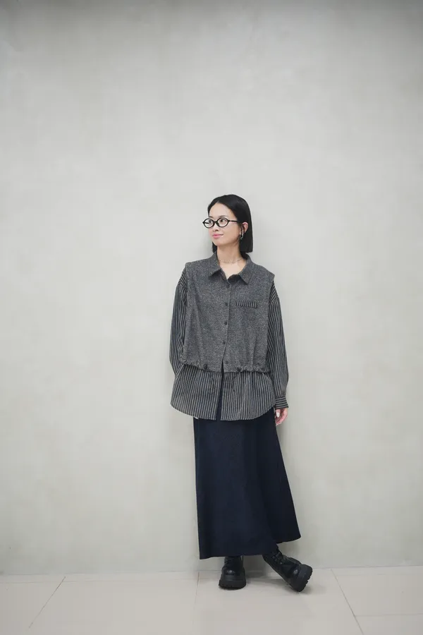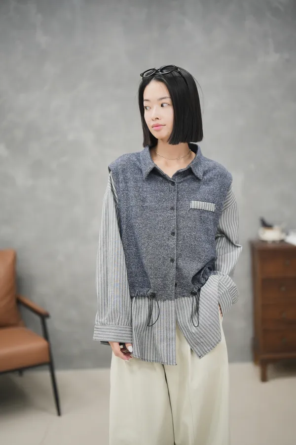 你們一直問的上衣終於來了 很特別混織拼接毛呢襯衫