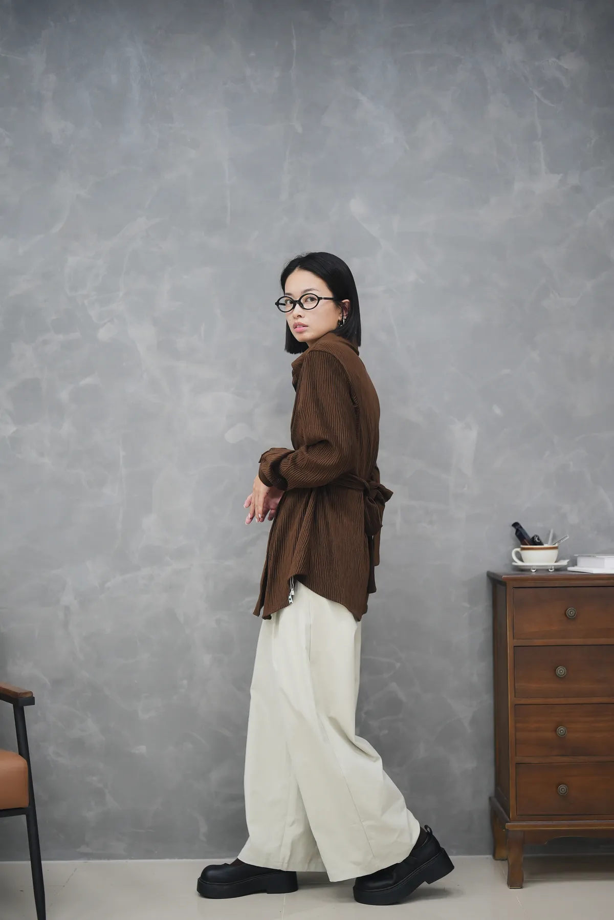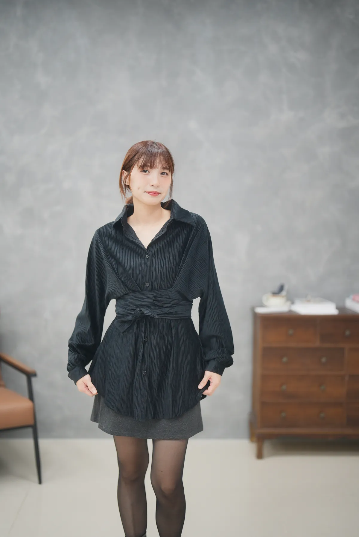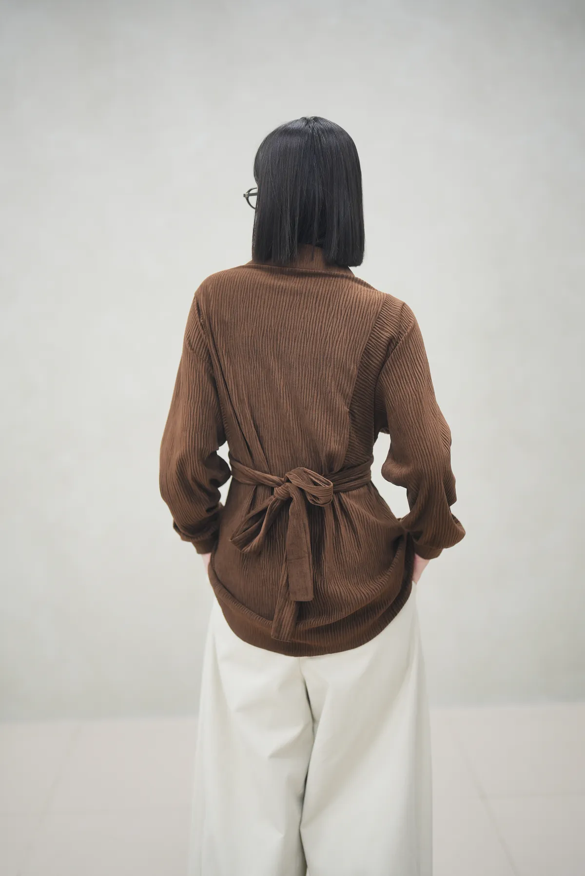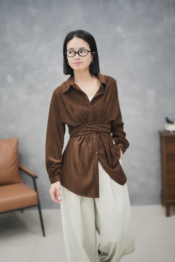 版型超好看 前綁帶紋理襯衫