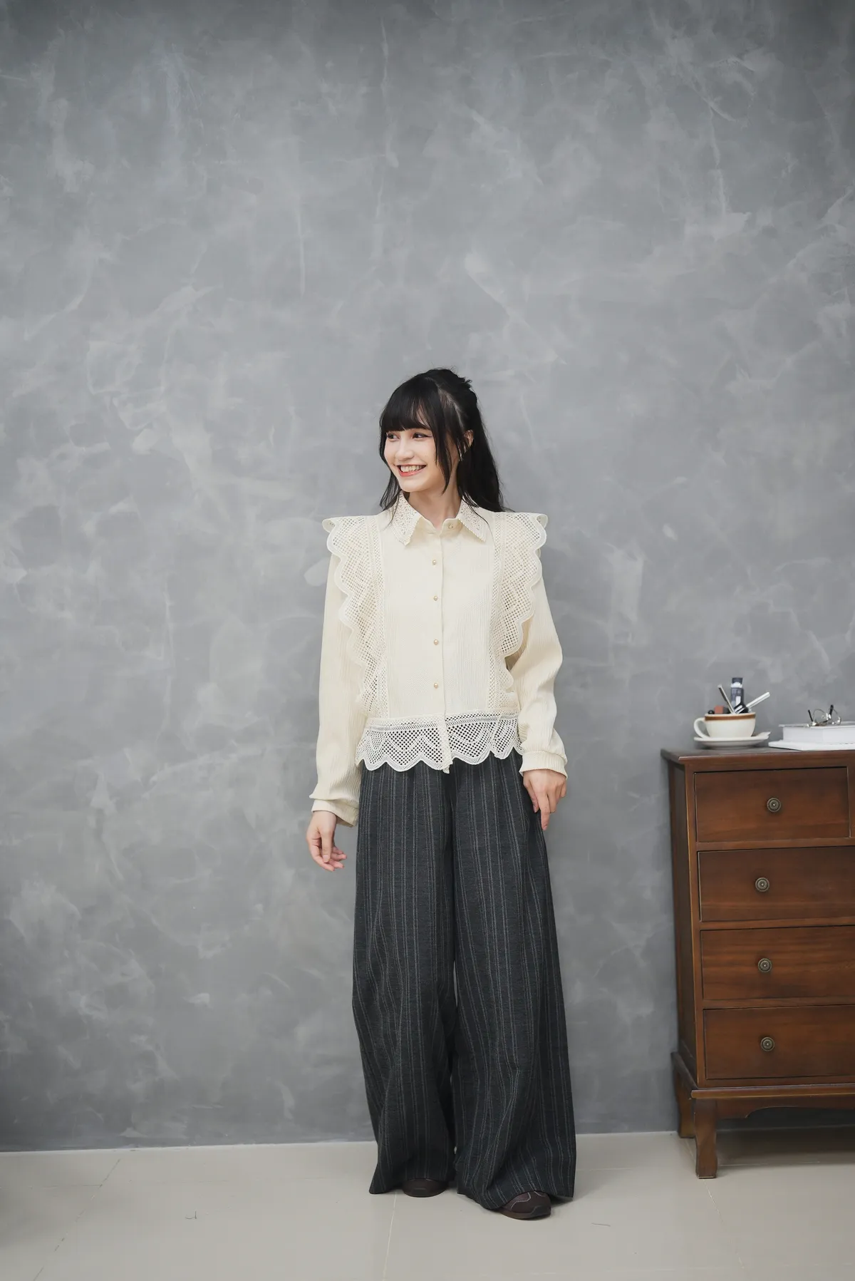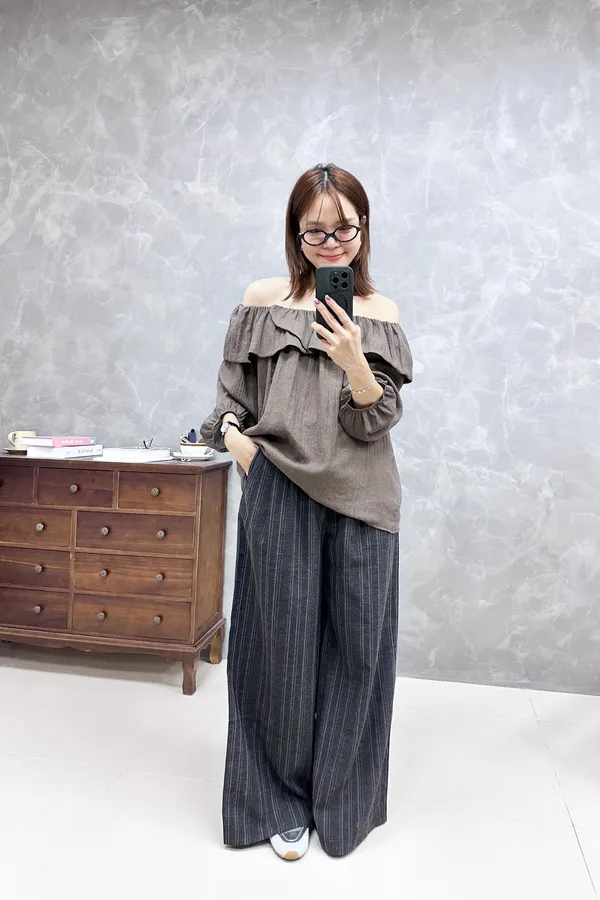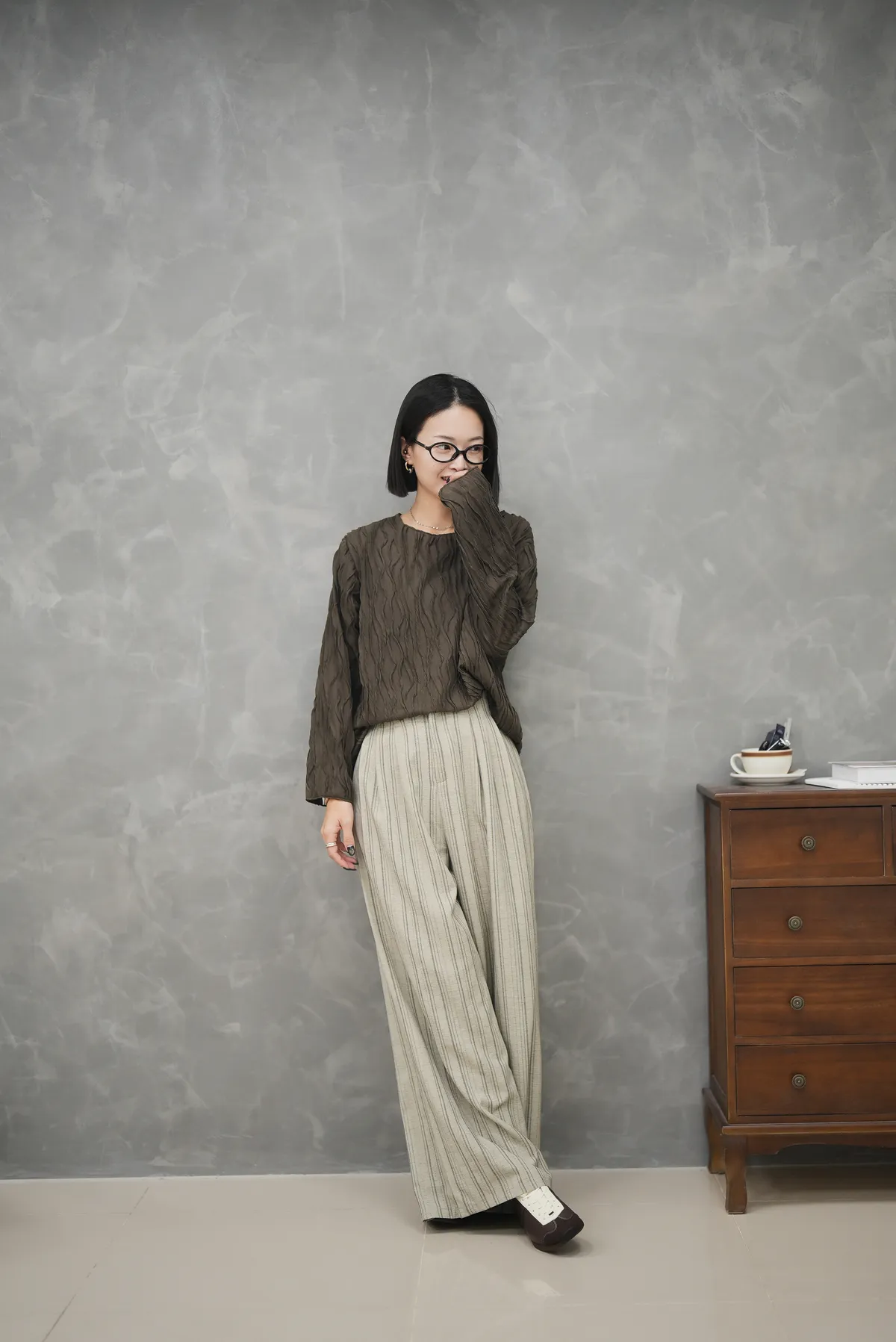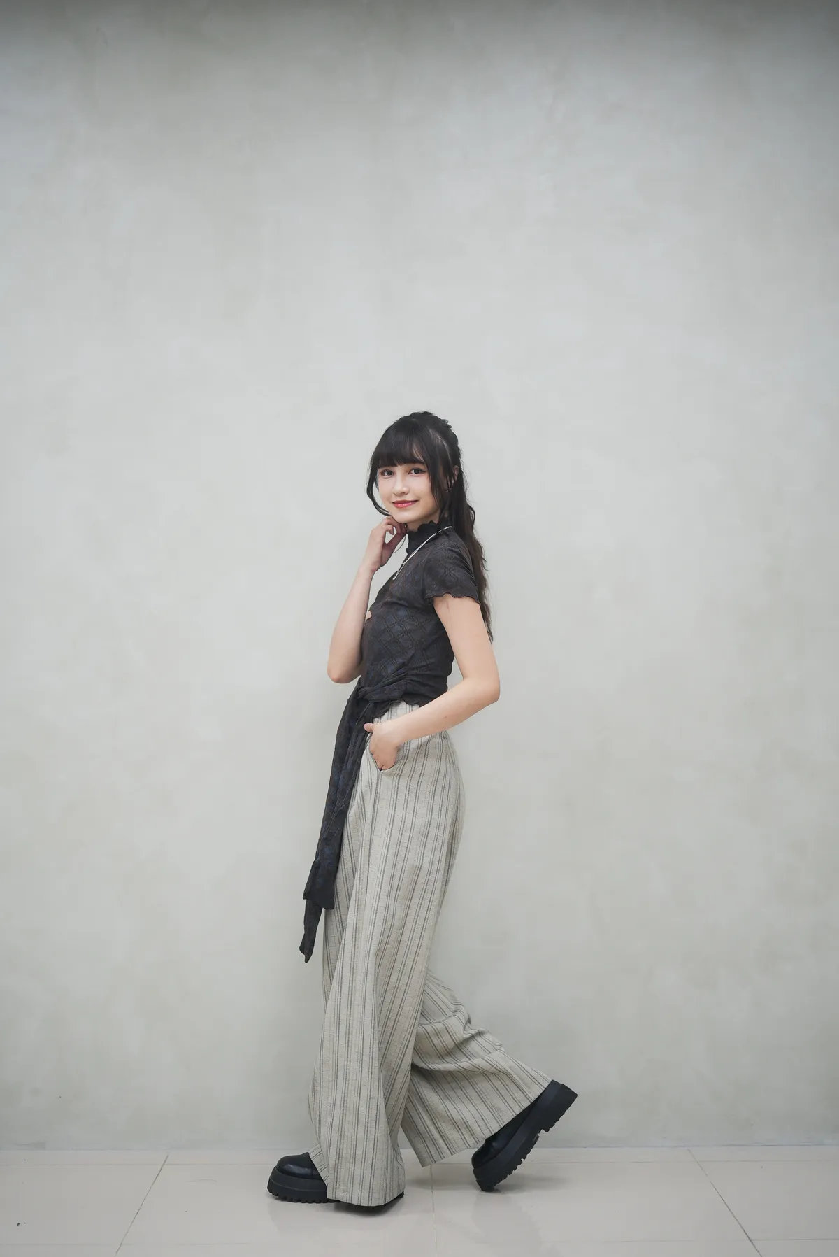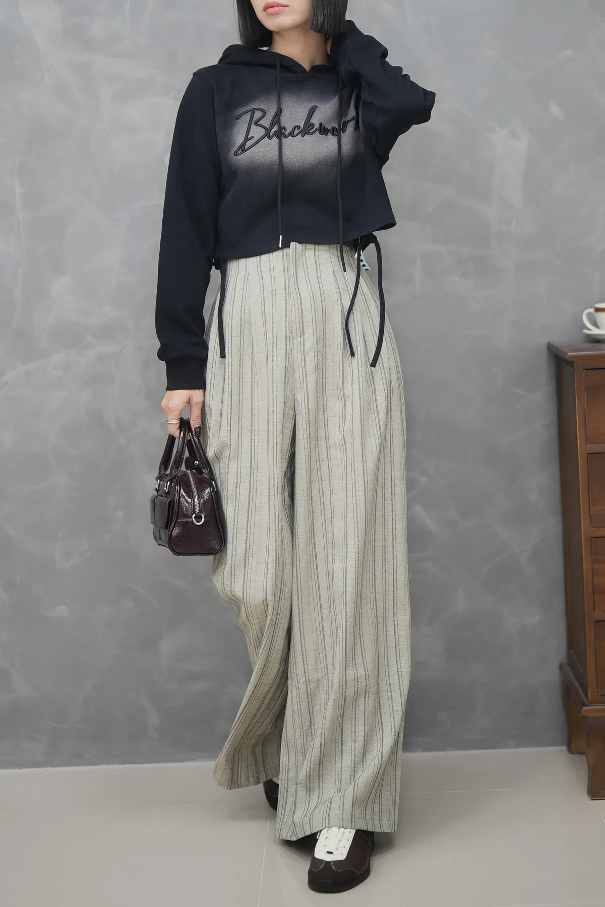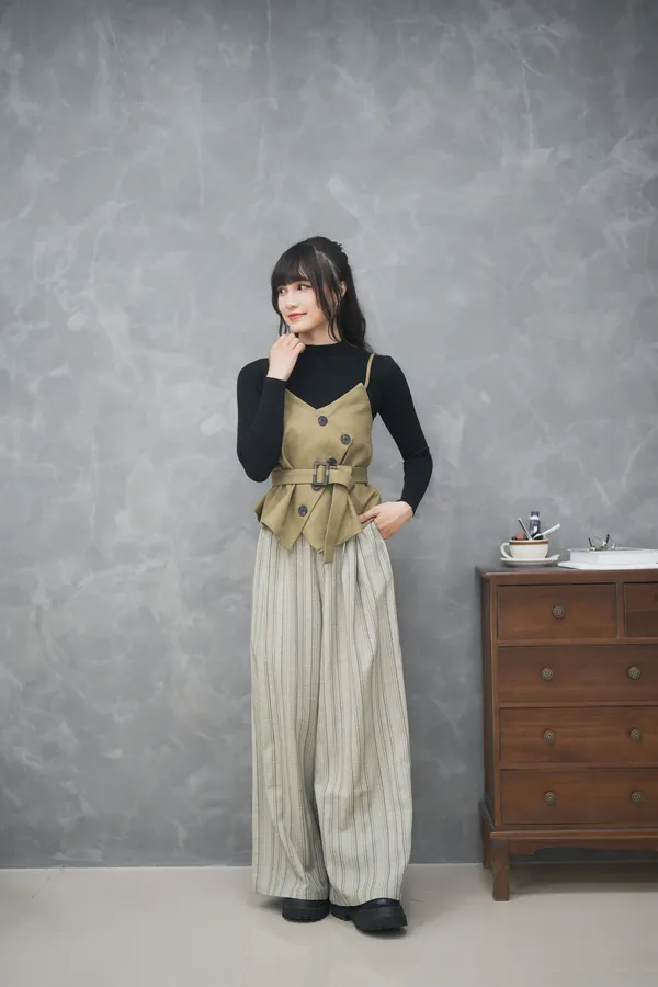 很挺的材質 一氣呵成的條紋高腰寬褲