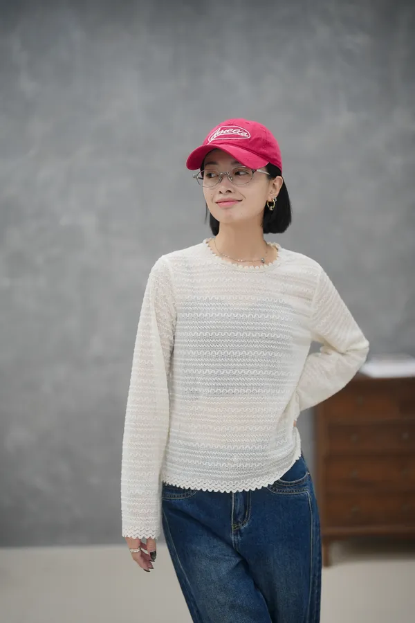 雕花總是不讓人失望 立體小勾紋雕花上衣