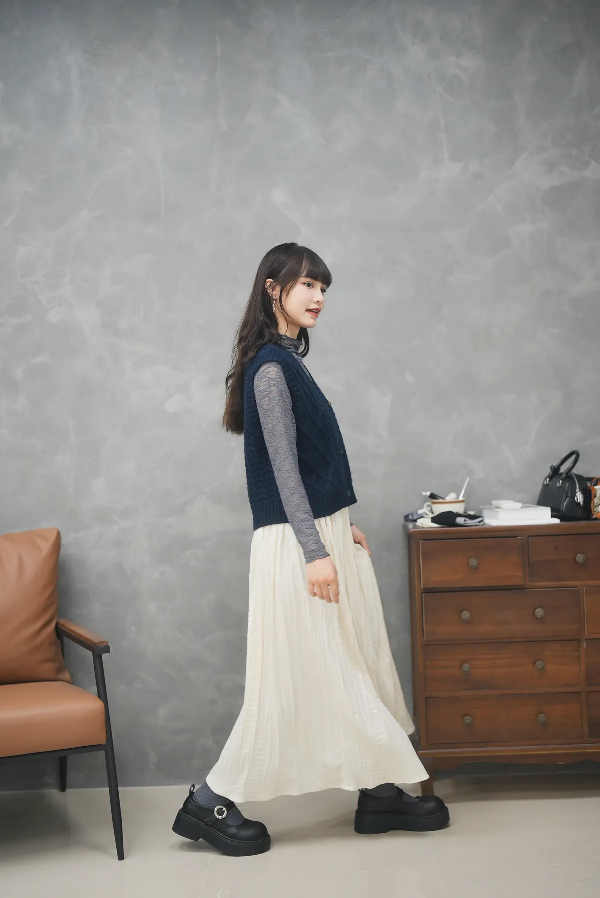 若隱若現的波光粼粼 絨料小百褶傘裙