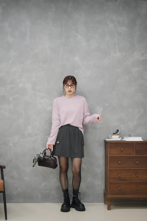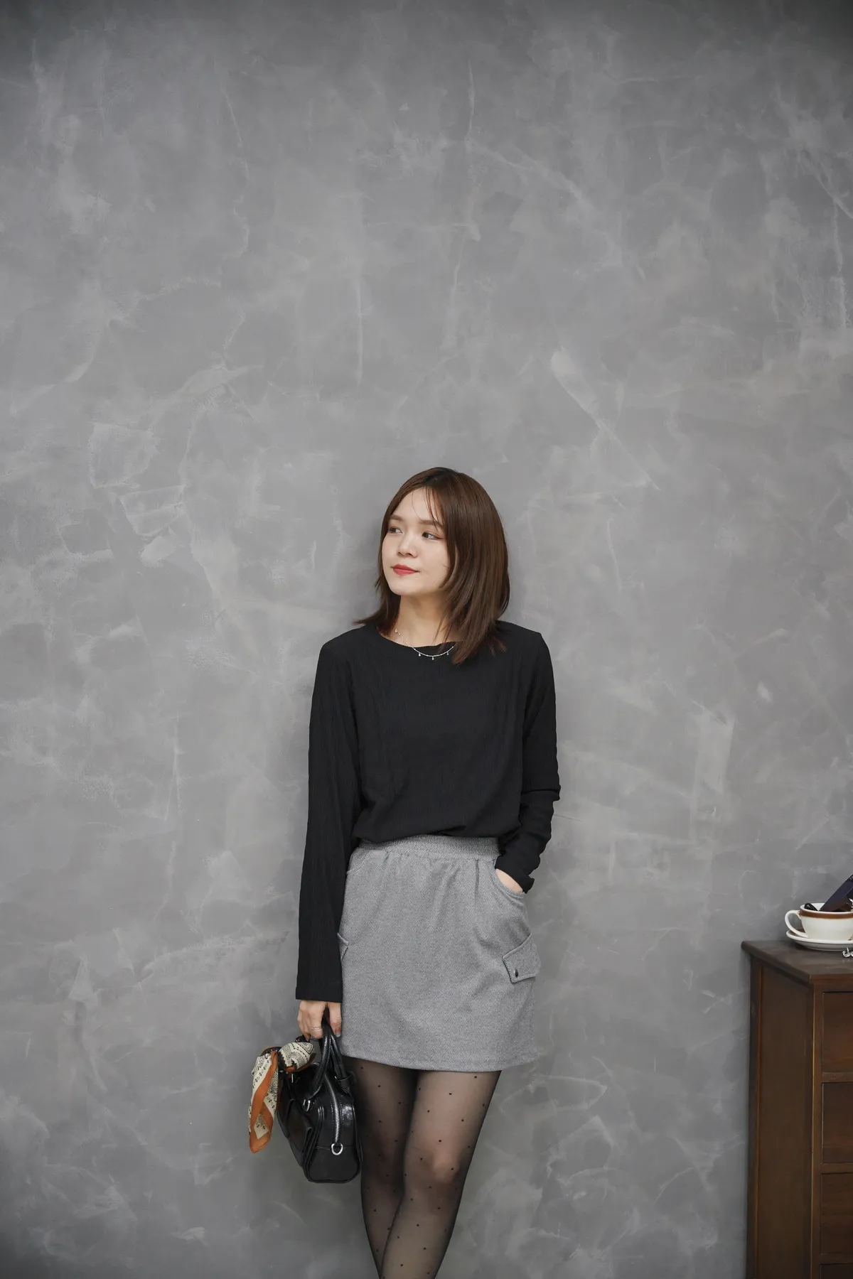 表層小毛呢 下身肉肉也不用怕混織短褲裙