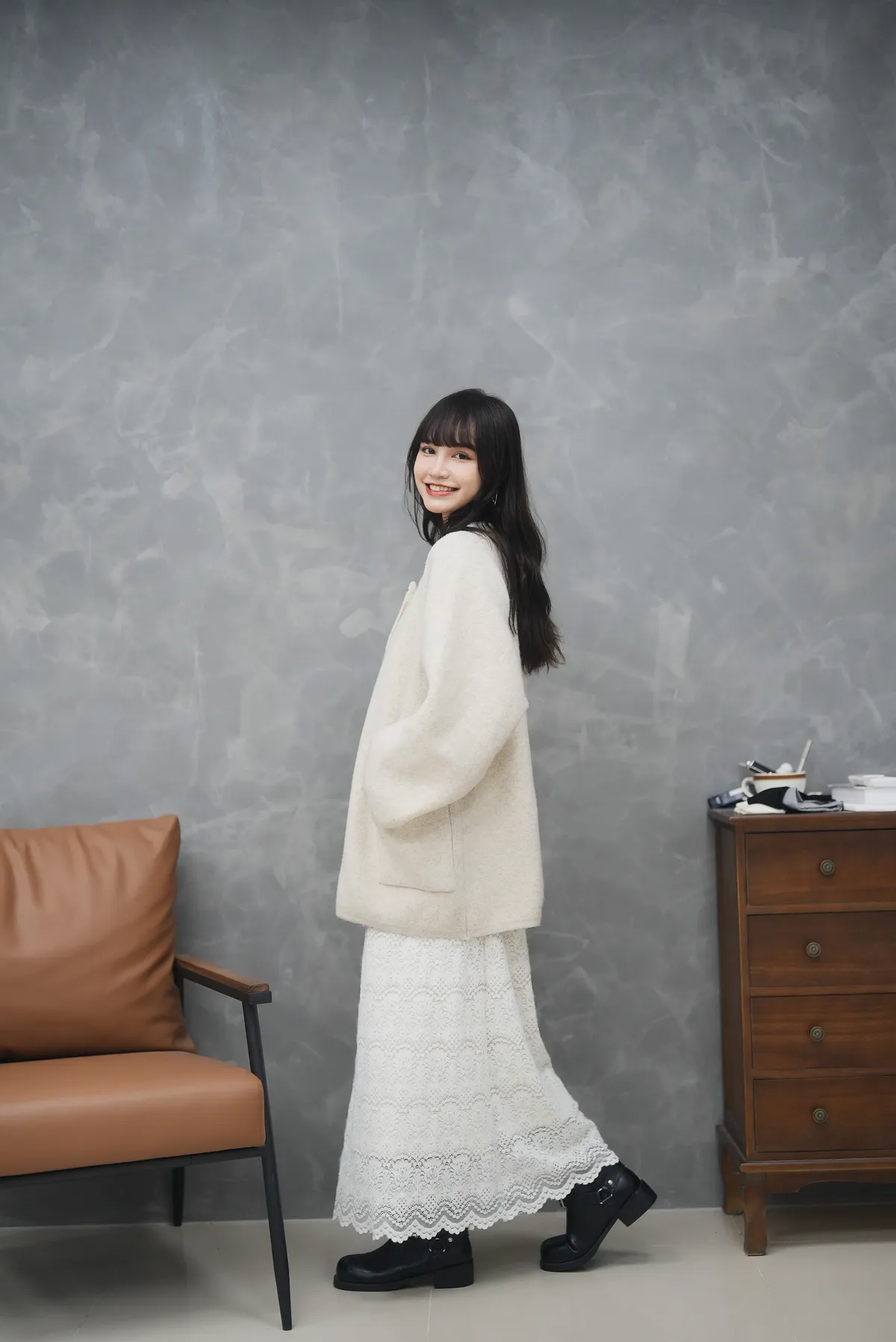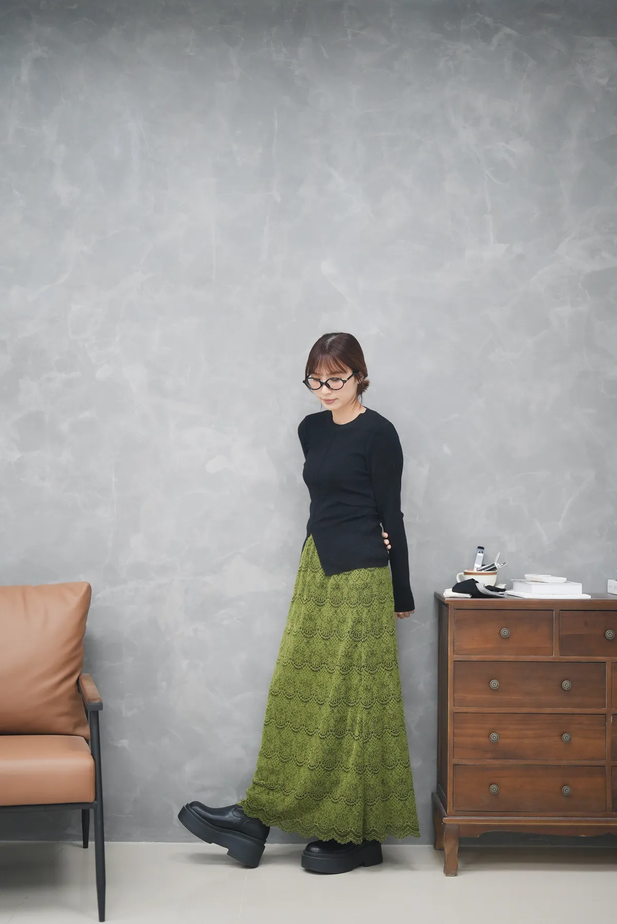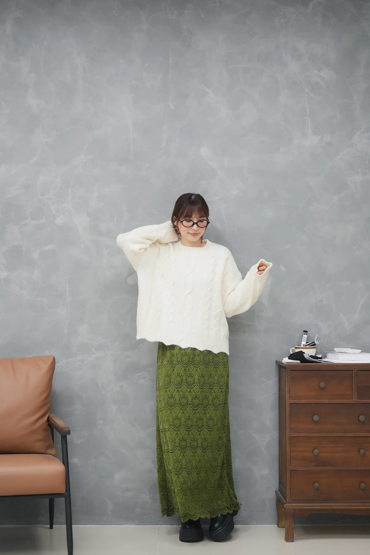 毛呢雕花直筒裙(內刷毛)