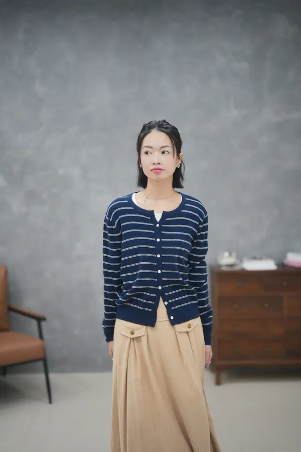 小v領露鎖骨就是滿滿氛圍的 軟軟條紋針織上衣