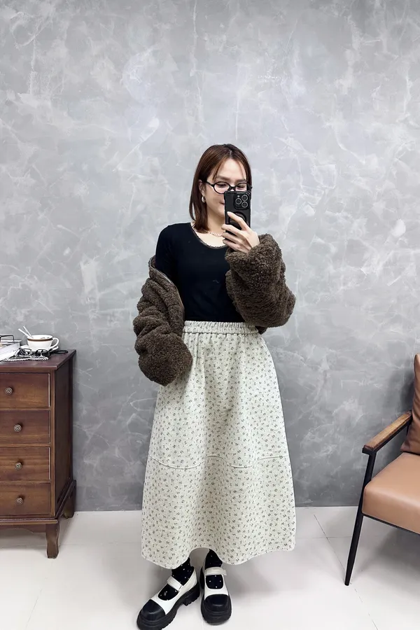 裙子本身立體的弧度美到沒話說把小腹跟屁股都藏好了有口袋整件是有磅數的毛呢搭配碎花好讚啊 📌 穿搭介紹請直接點選連結看直播唷 ▾ (連結約一個月後會自動刪除)🔗Facebook .⚠️ 注意事項請確認好尺寸、款式、顏色再下單若有疑慮都歡迎到粉絲專頁私訊我們我們會幫您建議適合的商品尺寸