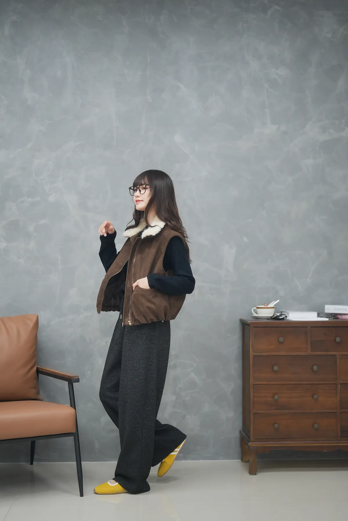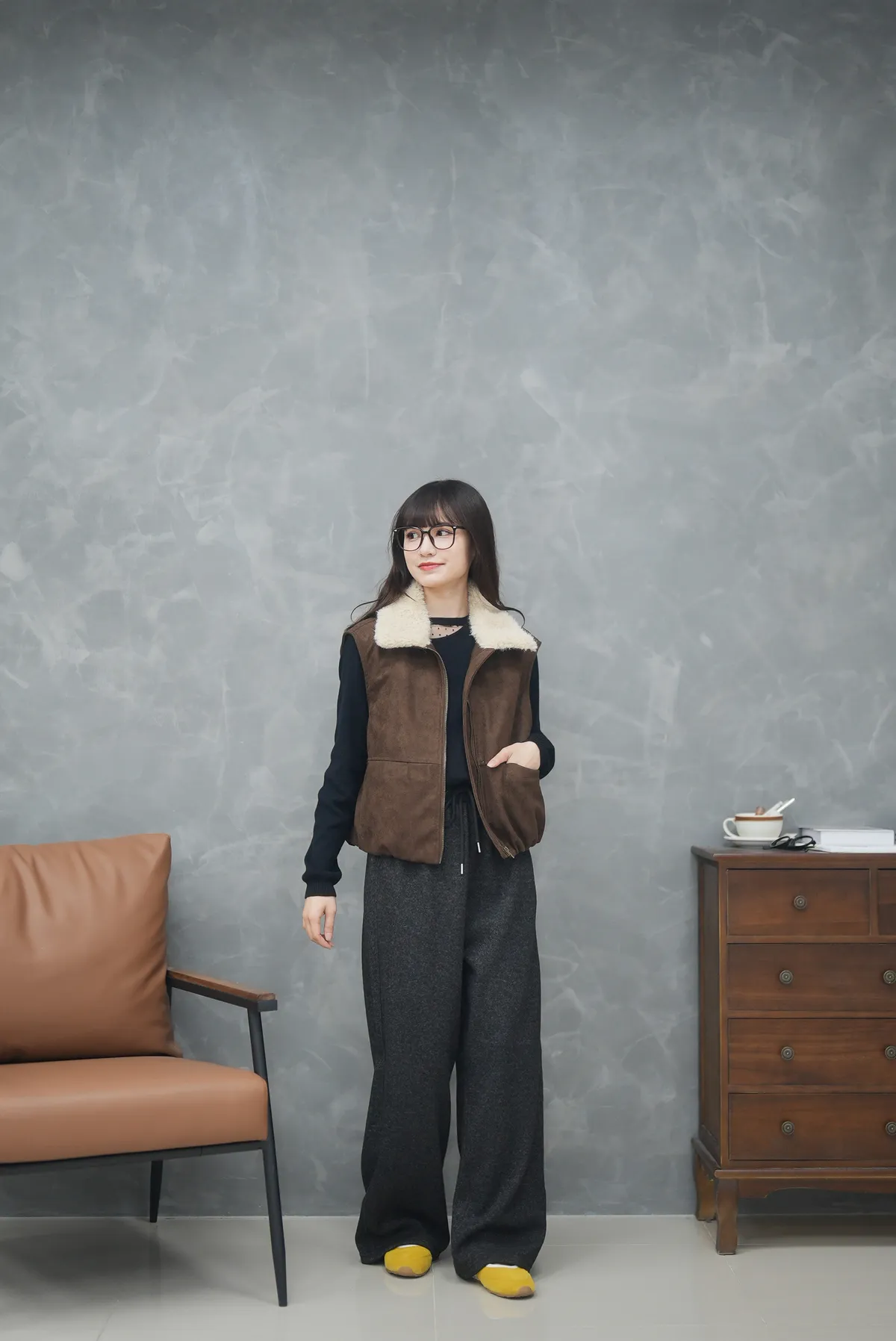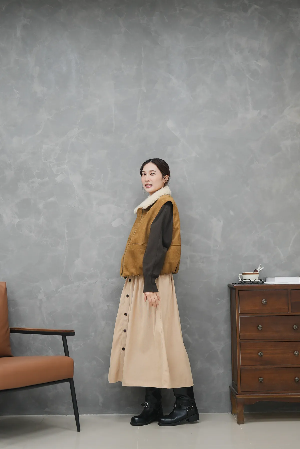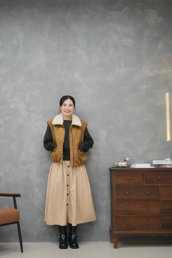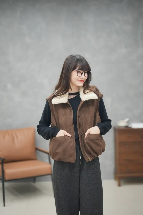 那個澎度真的不用多說 翻領麂皮小南瓜鋪棉背心