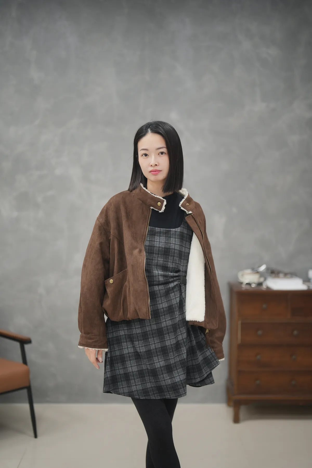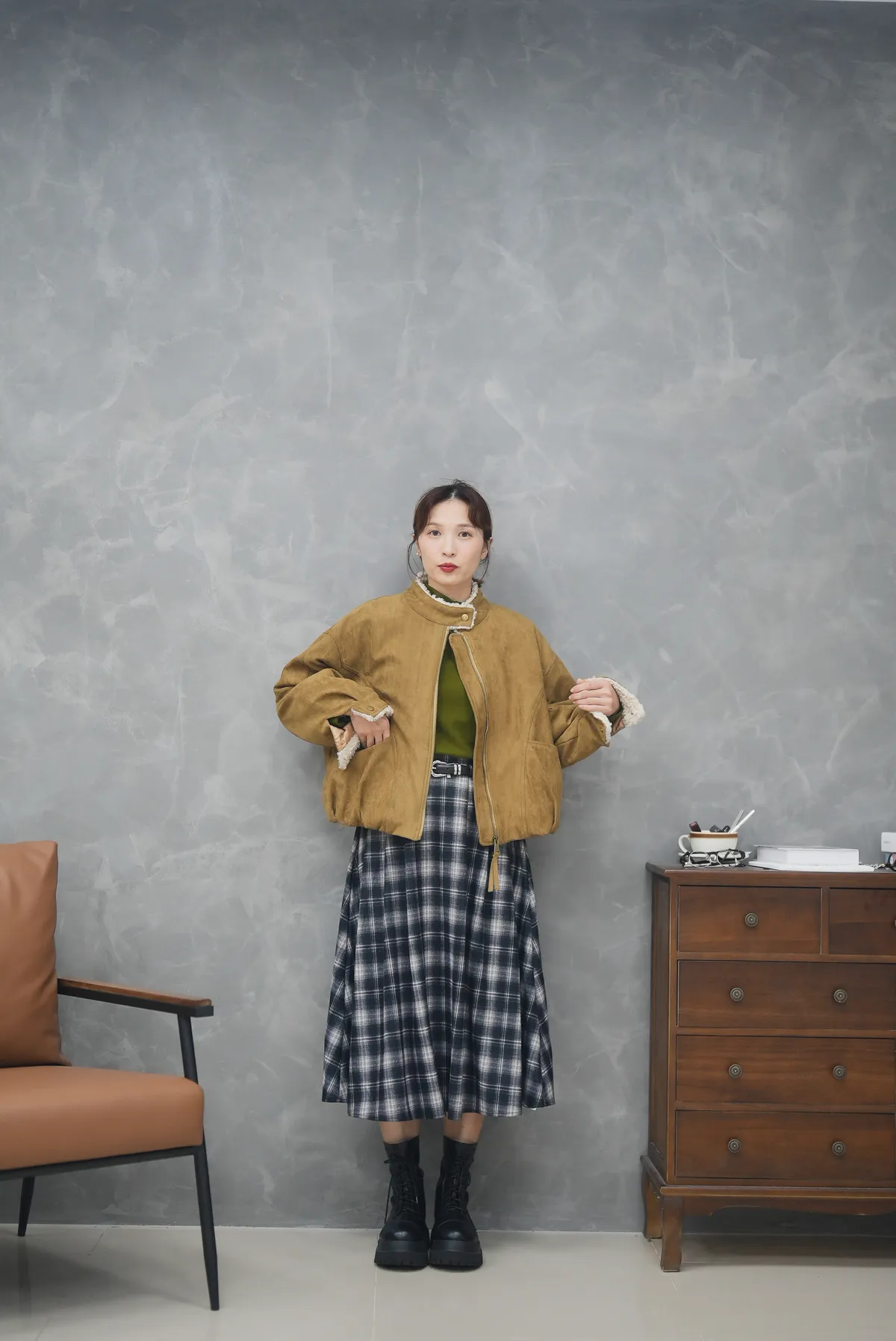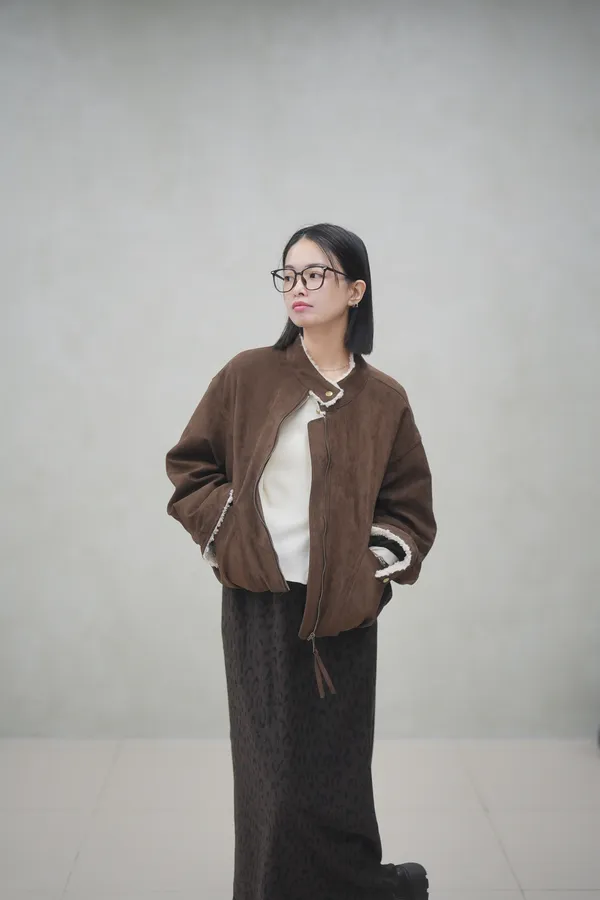(現貨)保暖度與可愛同時抵達 超舒服小立領Q毛麂皮外套