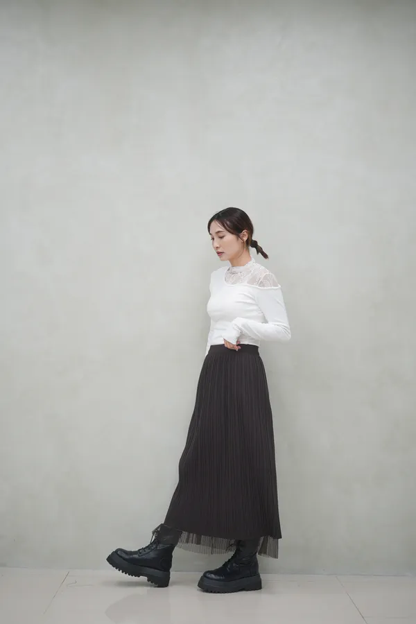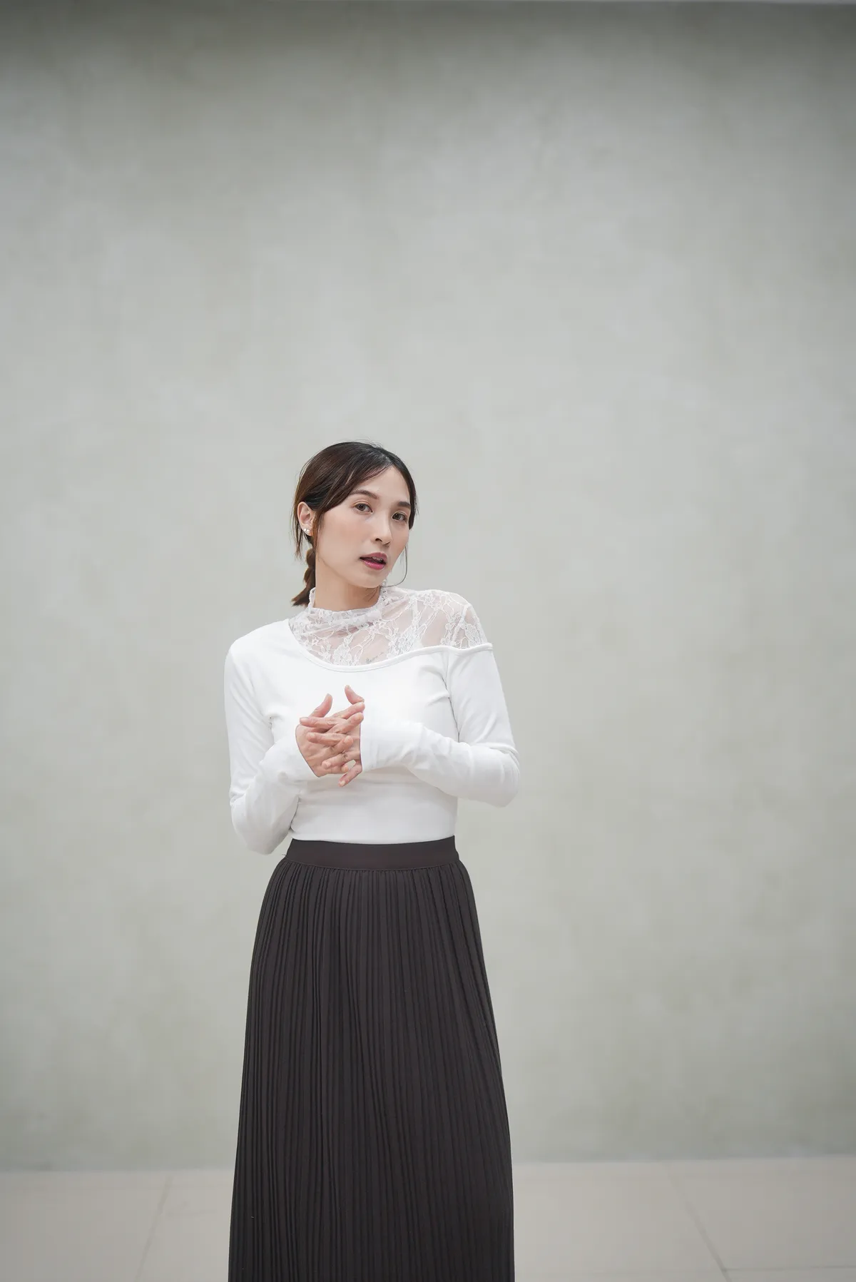 女人味跟時髦並具 軟蕾絲內刷毛拼接棉t