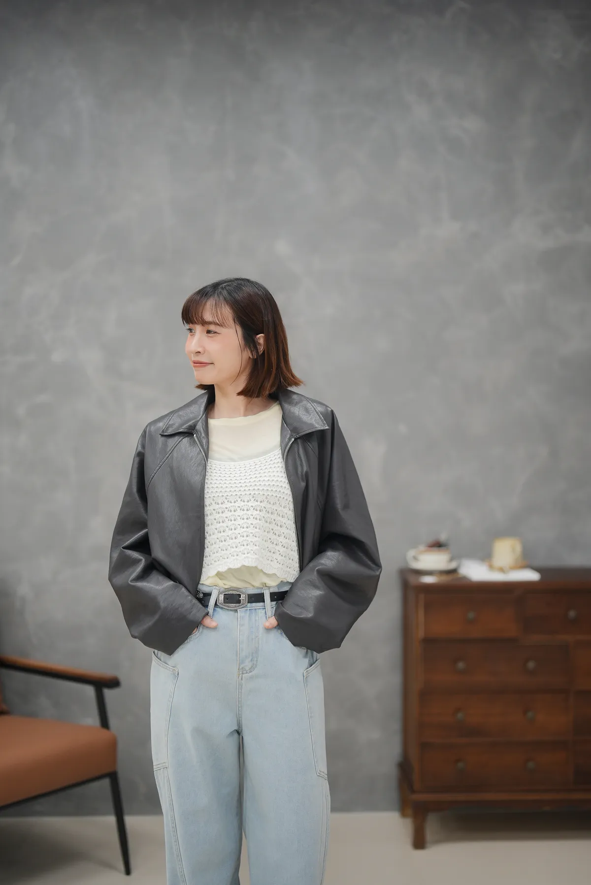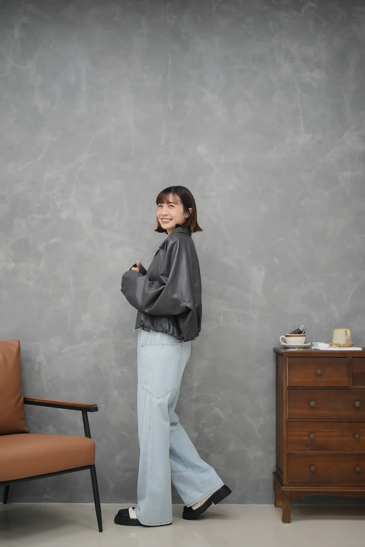 袖子的弧度美到驚人 手捻柔軟皮革外套