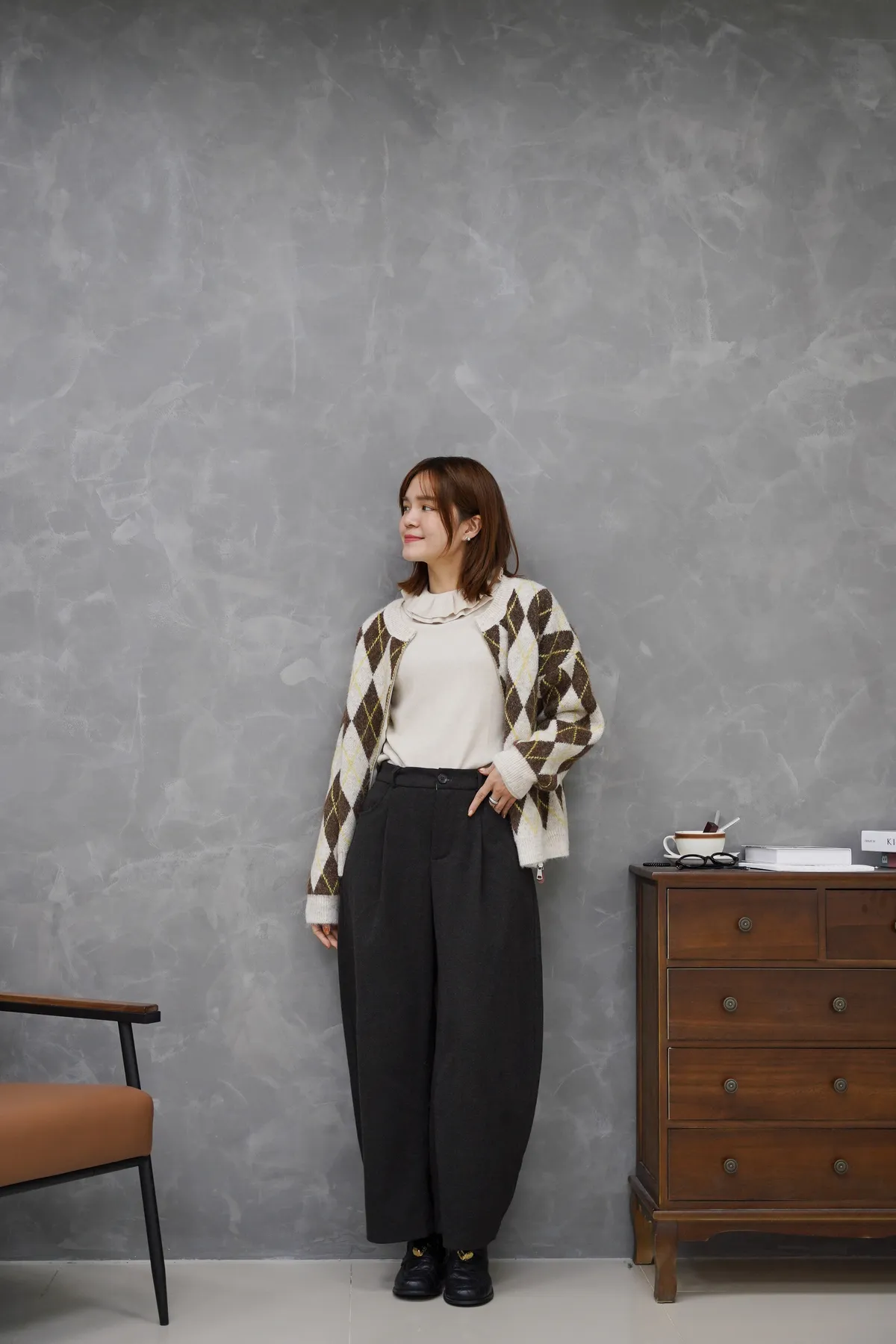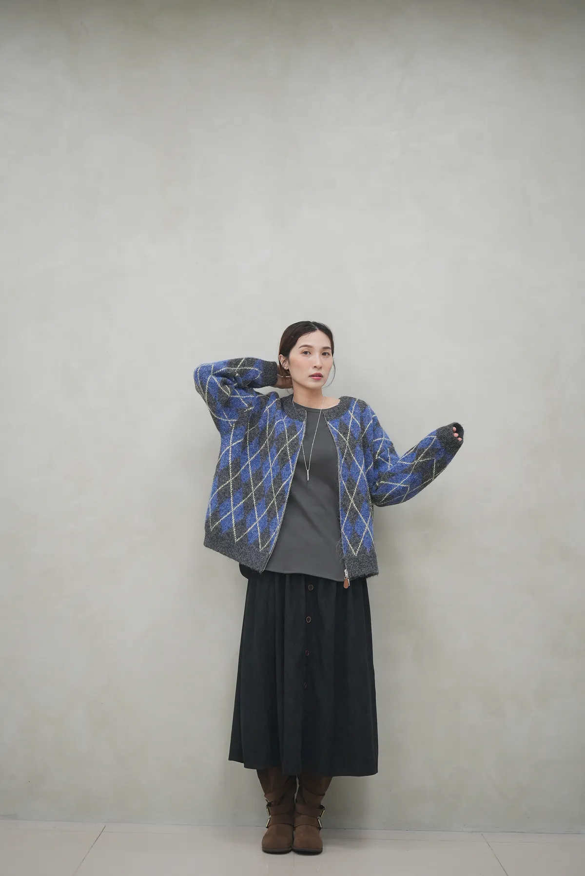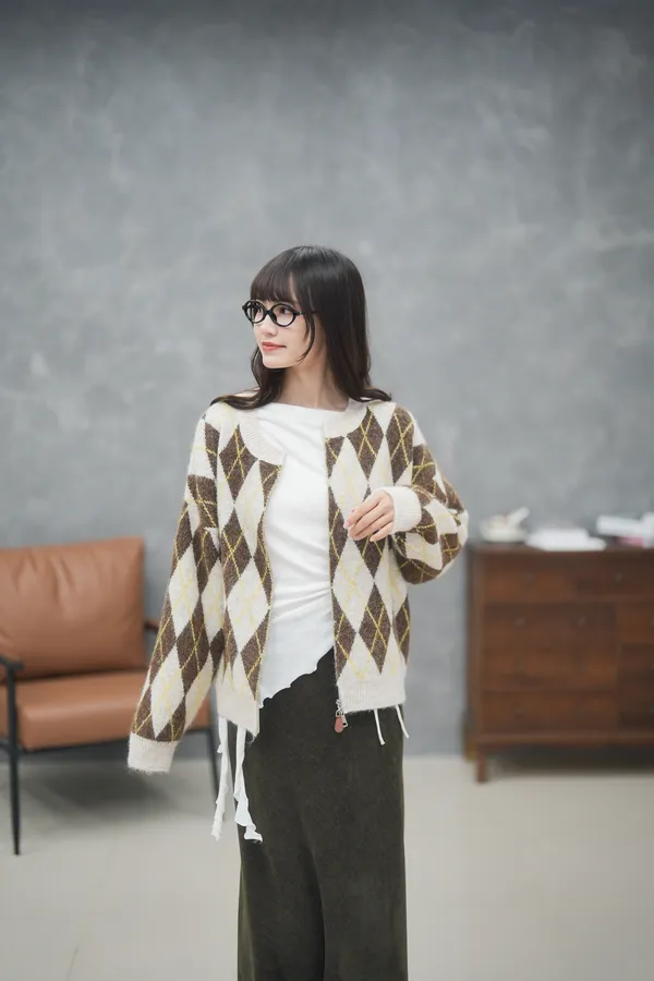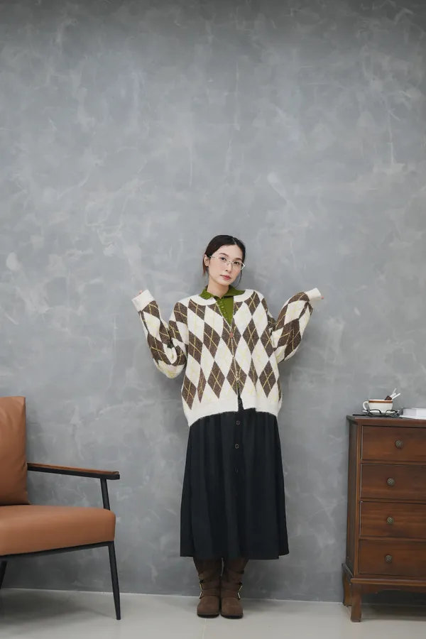 菱格紋的設計超級細緻 搭配拉鏈好好看的毛衣外套