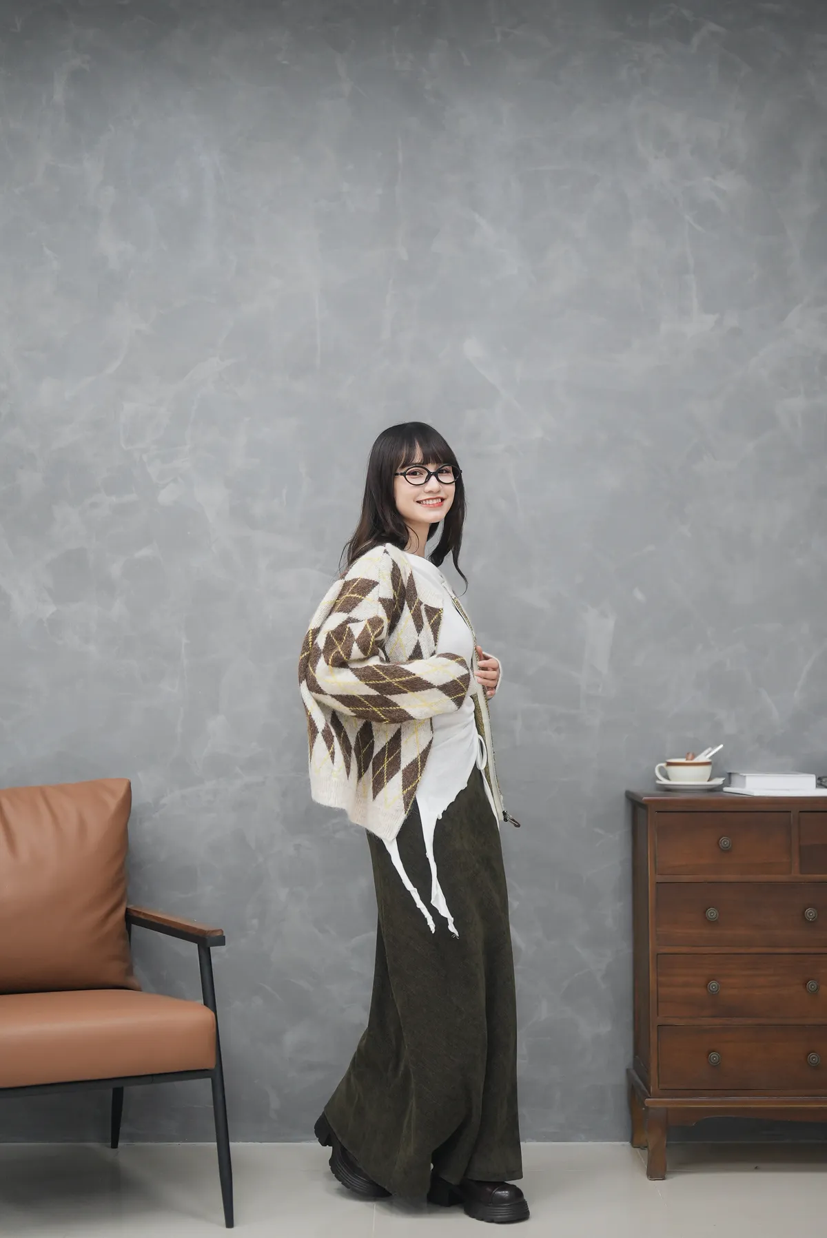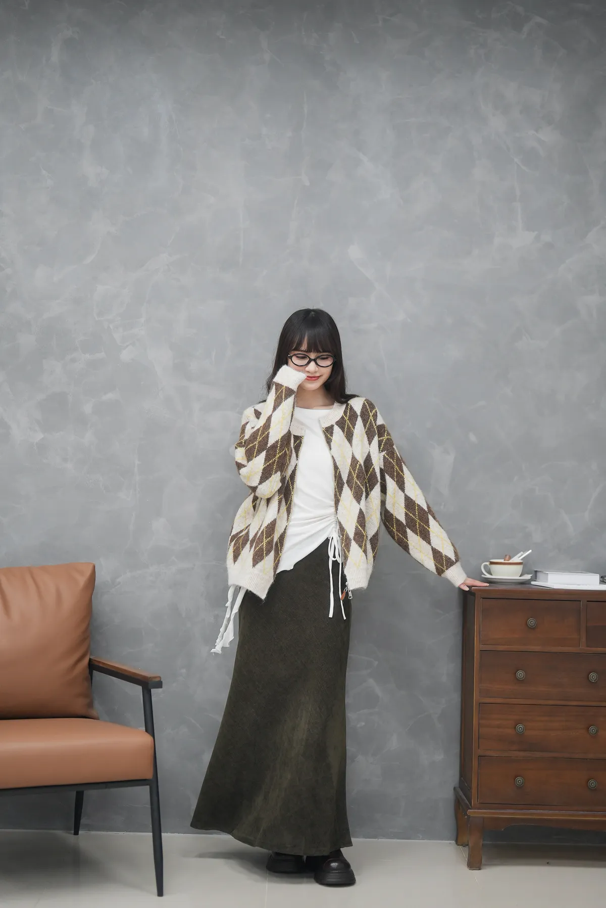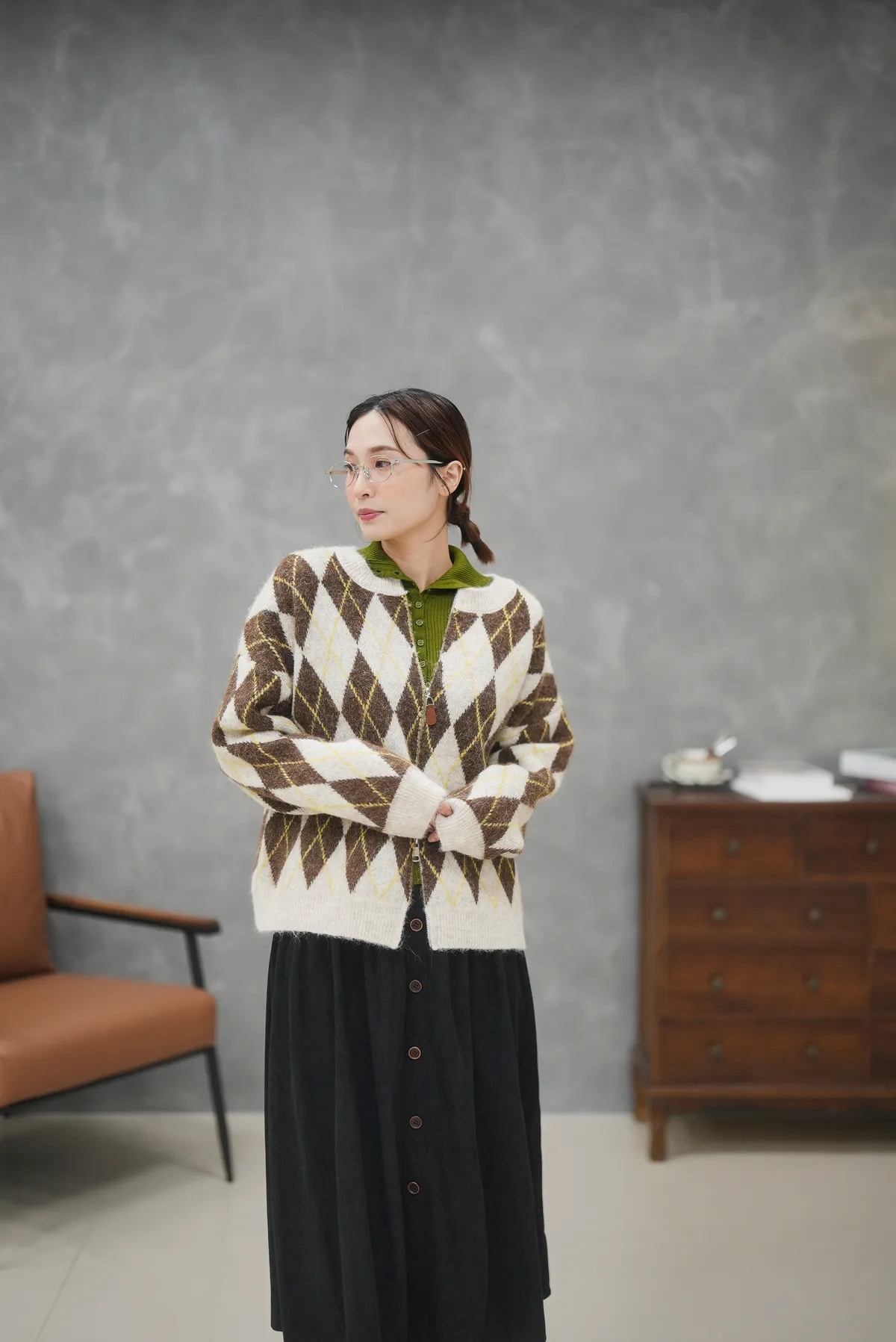 菱格紋的設計超級細緻 搭配拉鏈好好看的毛衣外套