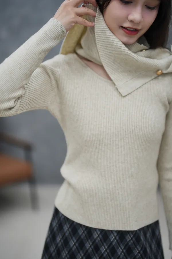 真的兩件式 領子竟然可以拆掉 高領細針織上衣