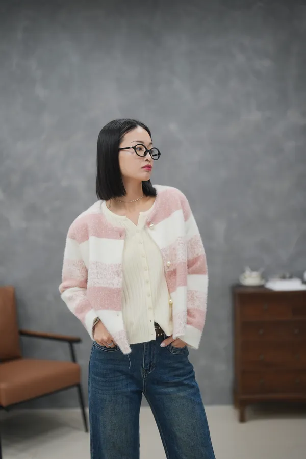 超級美的小寬袖 水貂毛珍珠釦外套