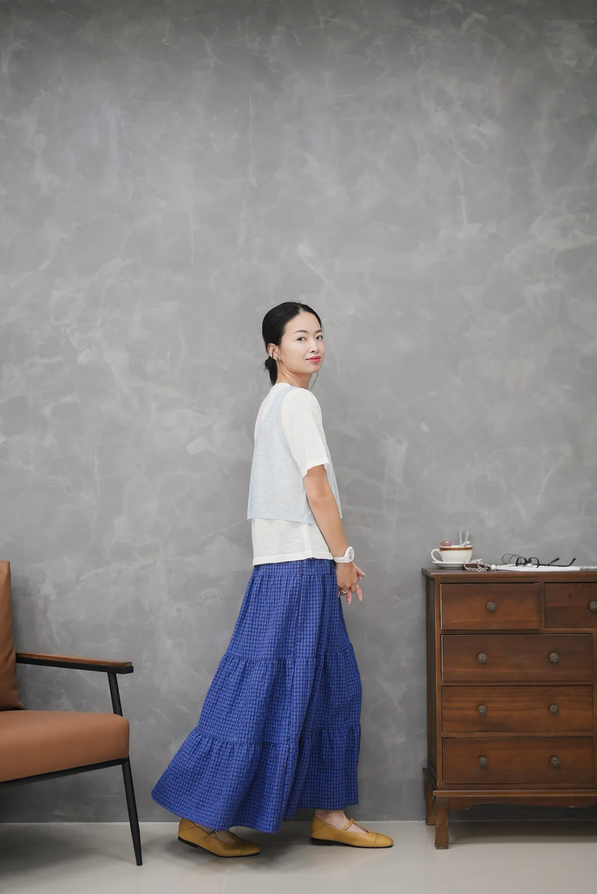 把腿長跟氣質一起穿上 細格蛋糕裙