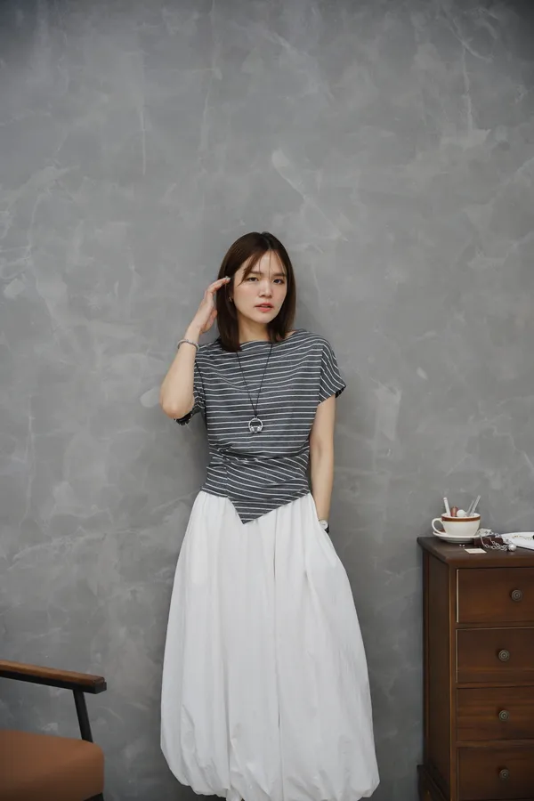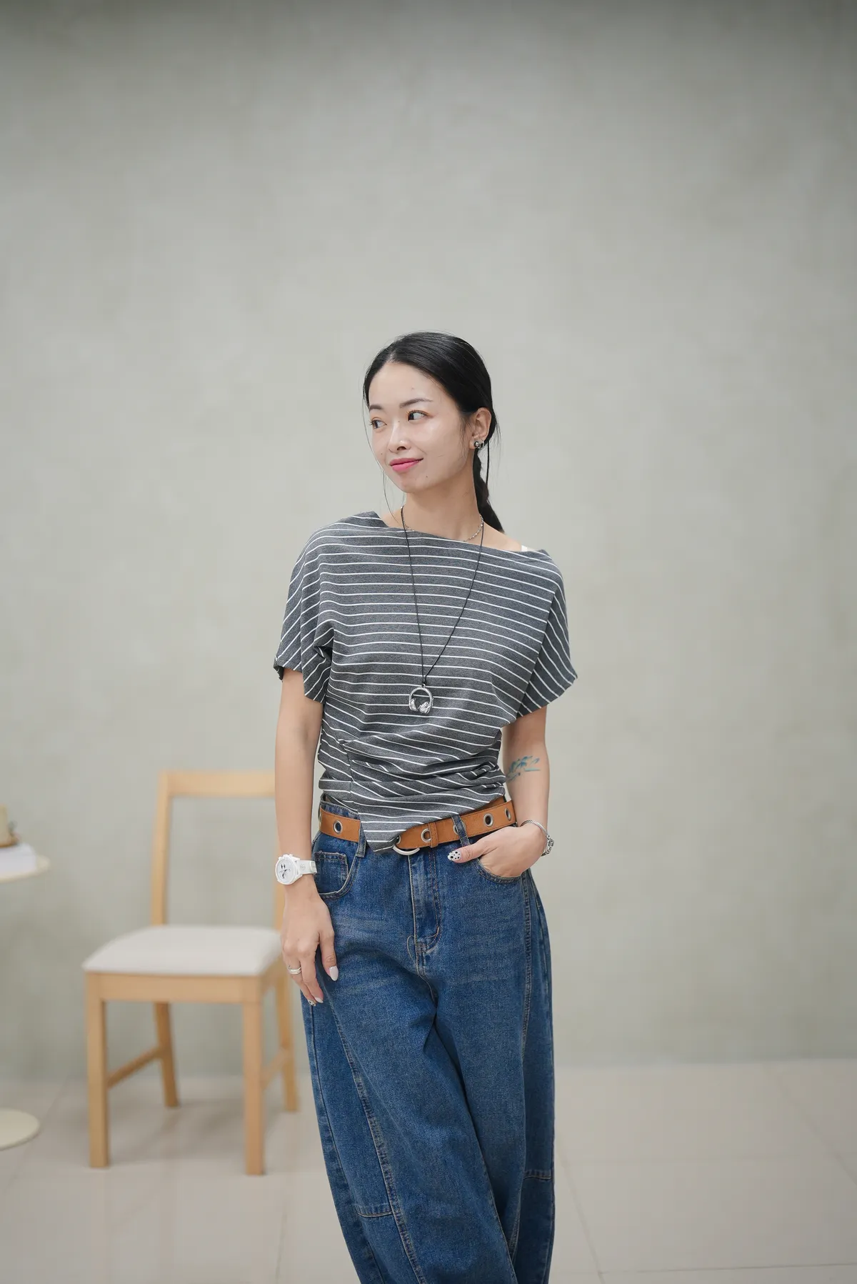 灰條嘴角會不自覺上揚 腰身比超級好看透氣棉質上衣(有附項鏈!)